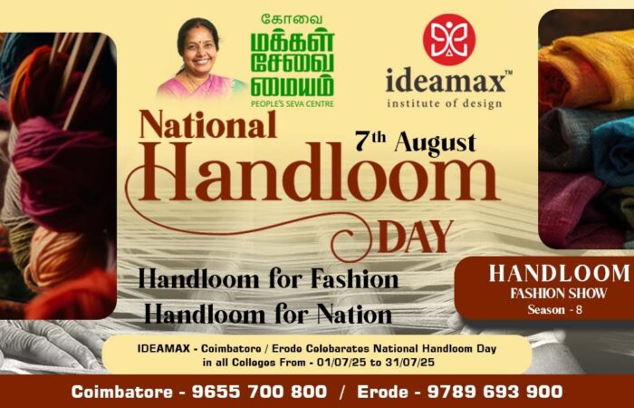 EventsOngoing Events Start Date End Date Category All CategoriesFashion ShowKids Style WalkHandloom Fashion ShowWorkshop Seminar Not Found Events Upcoming Events Start Date End Date Category All CategoriesFashion ShowKids Style WalkHandloom Fashion ShowWorkshop Seminar Not Found Events Past Events Start Date End Date Category All CategoriesFashion ShowKids Style WalkHandloom Fashion ShowWorkshop Seminar 26 Apr 2025 Fashion Show Coimbatore Style week April 26, 2025 @ 18:00 - 22:00 CODISSIA Trade Fair Complex, G.V. Fair Grounds,. Avinashi Road,Coimbatore 641 014 More details 25 Jul 2025 Handloom Fashion Show Handloom Fashion Show July 25, 2025 @ All Coimbatore colleges More details